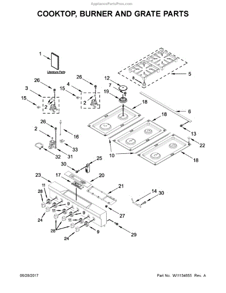This is a replacement cooktop top assembly that restores the cook surface and burner layout on compatible Whirlpool ranges. It replaces a damaged, cracked, or worn cooktop so you can safely resume normal cooking. What it does: