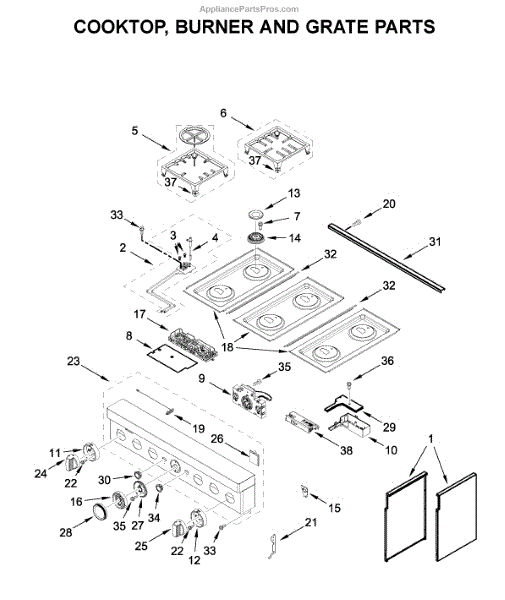 Parts for Kitchenaid KFDC506JAV00: Cooktop, Burner And Grate Parts