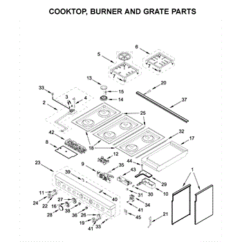 Parts for Kitchenaid KFDC558JMB00: Cooktop, Burner And Grate Parts