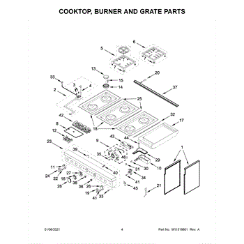 The Grate Pad is an OEM component for Whirlpool gas and electric ranges. Located underneath grates atop burner assemblies, this insulating pad protects the cooktop surface during use.