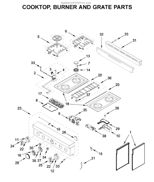 Parts for Kitchenaid KFGC500JAV00: Cooktop, Burner And Grate Parts