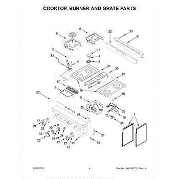 Parts for Kitchenaid KFGC500JSC05: Cooktop, Burner And Grate Parts