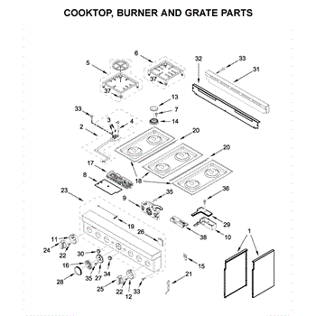 Parts for Kitchenaid KFGC506JAV00: Cooktop, Burner And Grate Parts