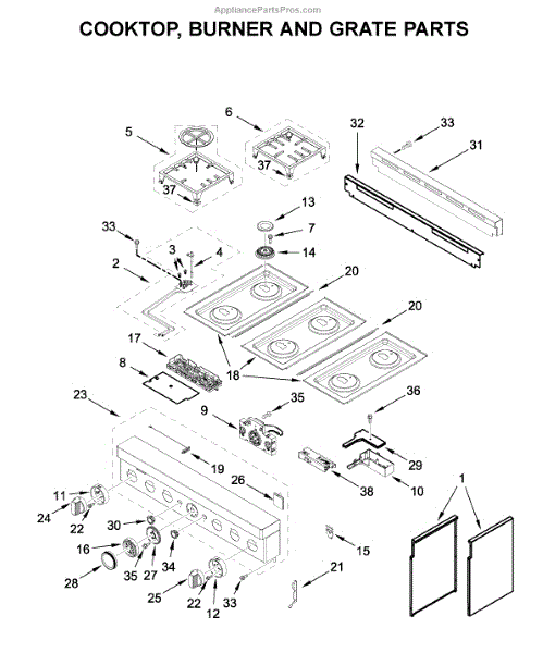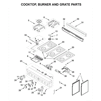 This cooktop top surface assembly provides the finished cooking surface and mounting for burners and controls, restoring the look and function of the appliance. It's the exterior top panel that supports the cooktop components and contains cutouts for burners and control interfaces. What it does