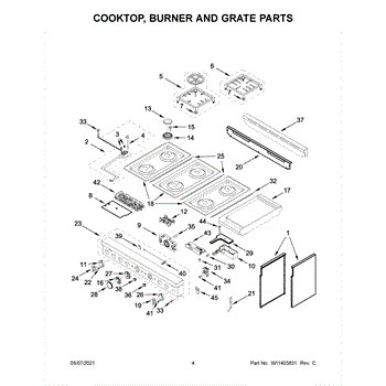 Parts for Kitchenaid KFGC558JSC00: Cooktop, Burner And Grate Parts