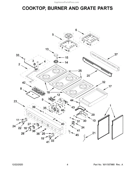 Parts for Kitchenaid KFGC558JSS01: Cooktop, Burner And Grate Parts