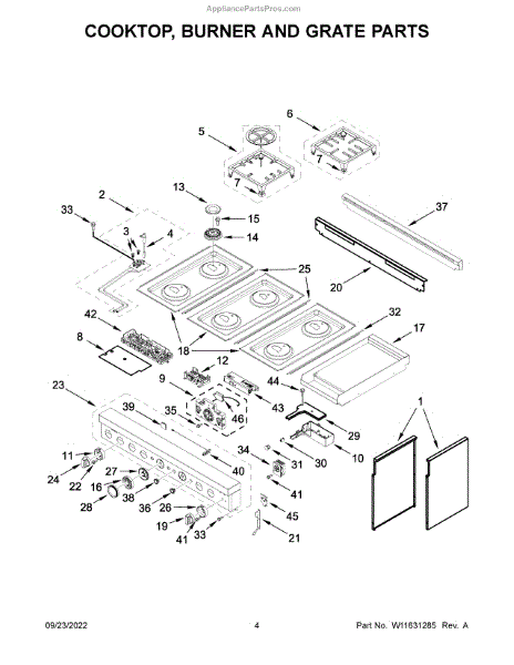 Parts for Kitchenaid KFGC558JSS05: Cooktop, Burner And Grate Parts