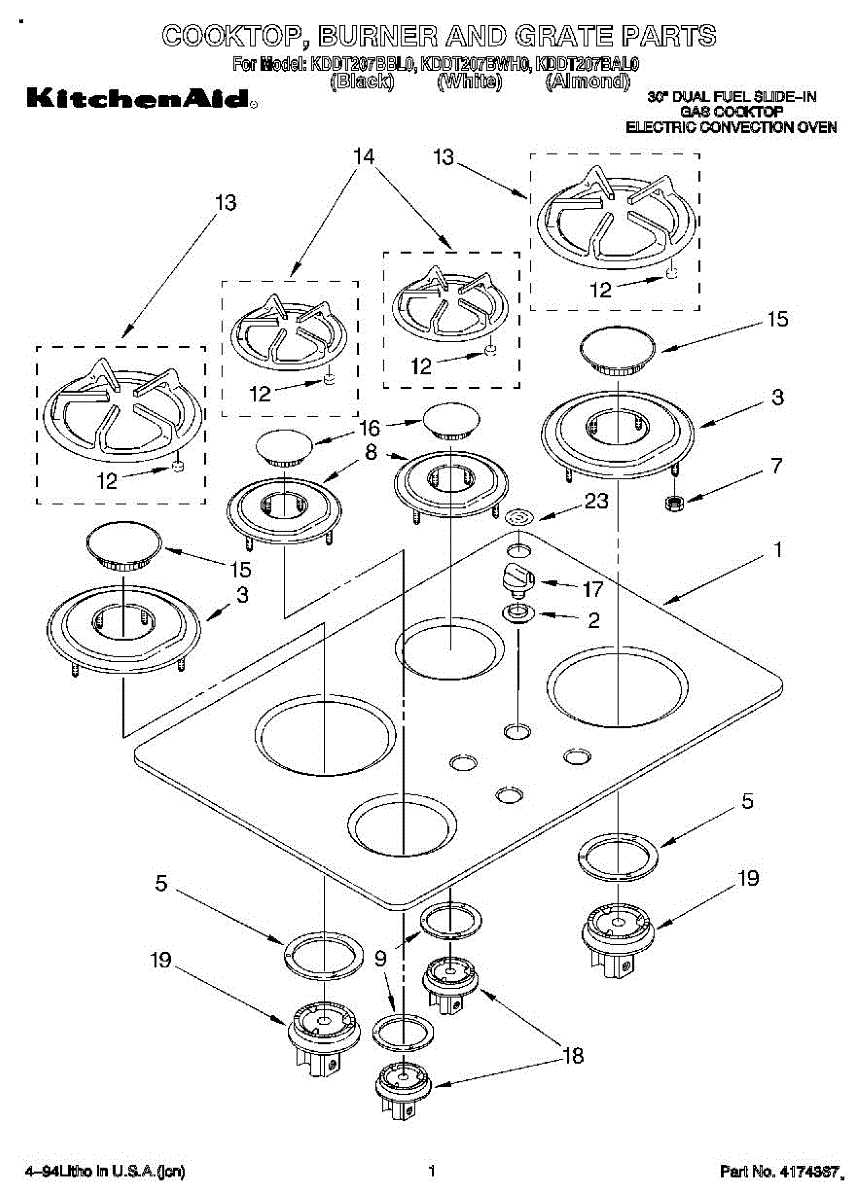 Parts for Kitchenaid KDDT207BAL0: 01 - Cooktop, Burner And Grate Parts
