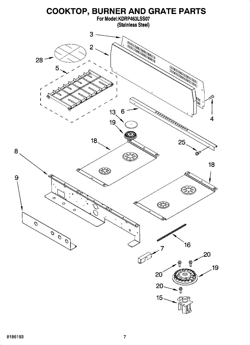 Parts for Kitchenaid KDRP463LSS07: 06 - Cooktop, Burner And Grate Parts