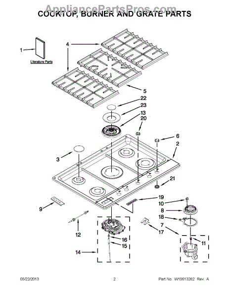 This burner head sits atop the semi-rapid gas burner on the cooktop, shaping the flame and distributing heat evenly to your cookware for reliable day-to-day cooking performance.