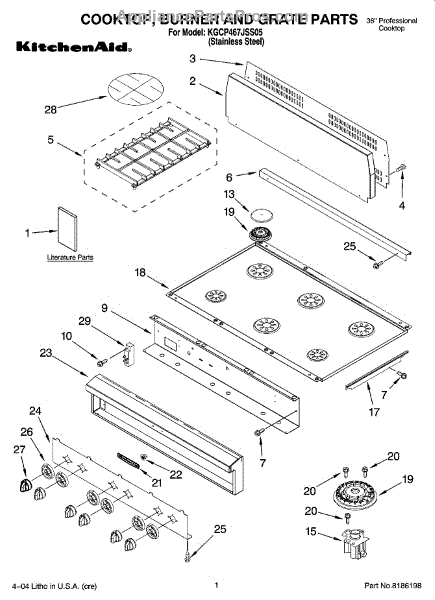 Parts for Kitchenaid KGCP467JSS05: 01 - Cooktop, Burner And Grate Parts