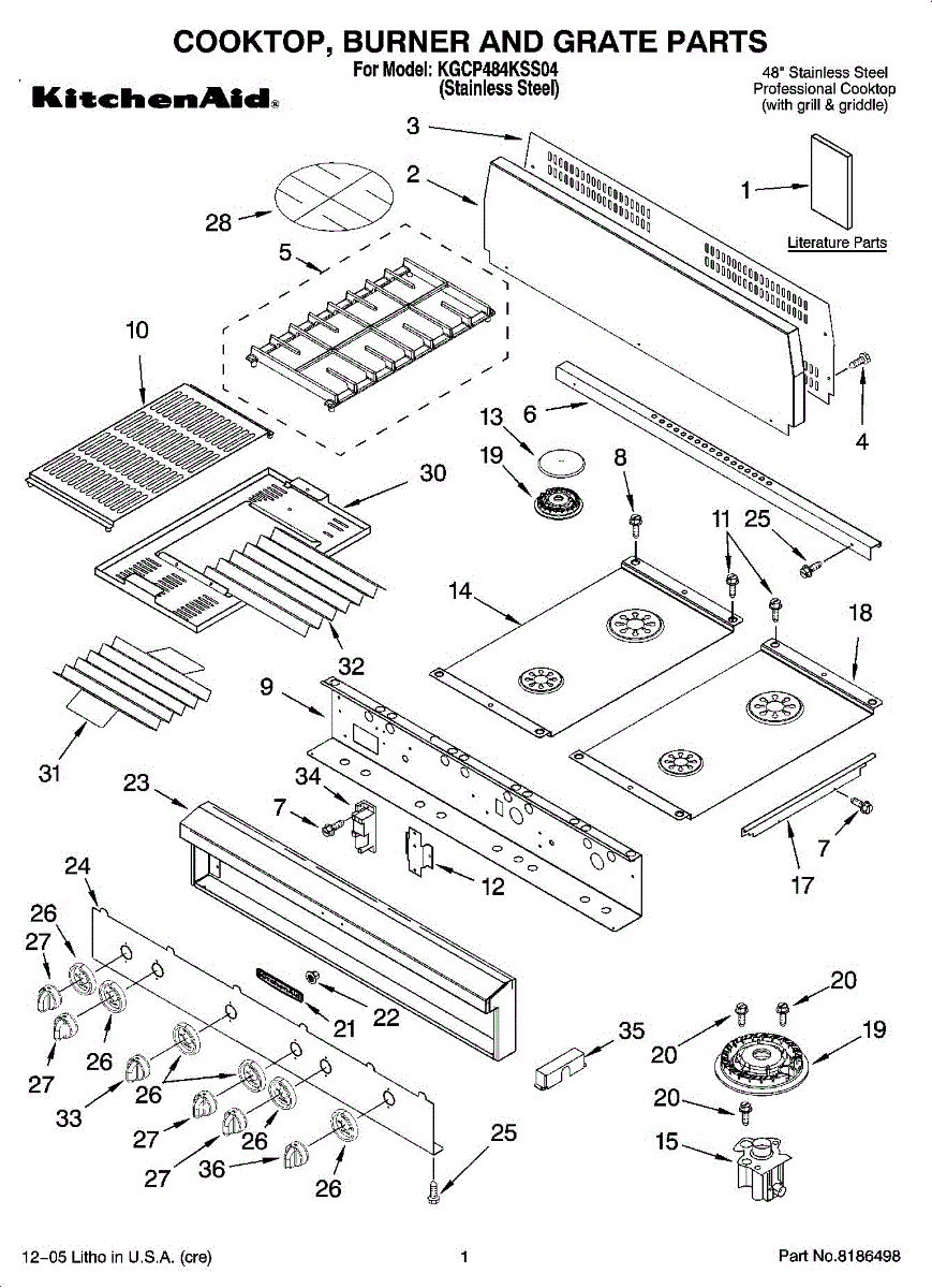 Parts for Kitchenaid KGCP484KSS04: 01 - Cooktop, Burner And Grate Parts