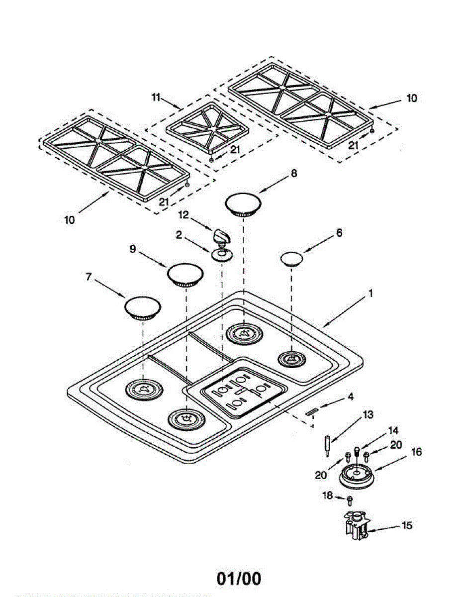 The Burner Grate Foot Pad Kit is an OEM part for Whirlpool cooktops. This kit includes multiple foot pads, which are attached to the bottom of the burner grates. These parts play a significant role in stabilizing the grates, preventing them from scratching the surface. Causes of a bad Burner Grate Foot Pad can include regular wear and tear from daily use, high heat, and cleaning processes that can degrade the material over time. Symptoms of a bad Burner Grate Foot Pad include: