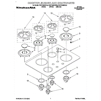 Parts for Kitchenaid KGCT305BAL0: 01 - Cooktop, Burner And Grate Parts