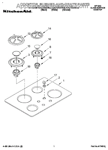 Parts for Kitchenaid KGCT305BBL3: 01 - Cooktop, Burner And Grate Parts