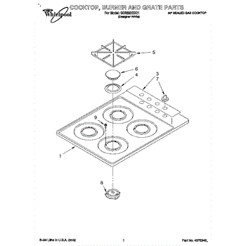 Parts for Whirlpool SC8630EBQ1: 01 - Cooktop, Burner And Grate Parts