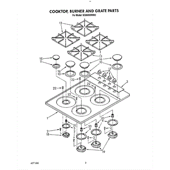 Parts for Whirlpool SC8630EWW2: 02 - Cooktop, Burner And Grate Parts