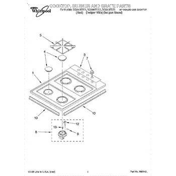 Parts for Whirlpool SC8640EDQ1: 01 - Cooktop, Burner And Grate Parts