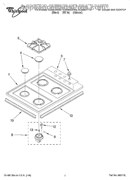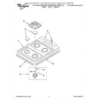 Parts for Whirlpool SC8640EEW0: 01 - Cooktop, Burner And Grate Parts