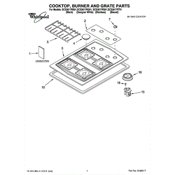 Parts for Whirlpool SCS3617RB01: 01 - Cooktop, Burner And Grate Parts