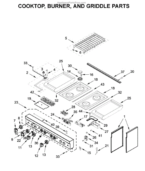 Causes related to normal wear over extended use, exposure to cleaning chemicals, or damage from heavy pans accidentally sliding off grates.