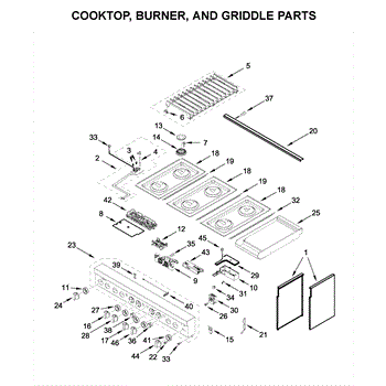 The Grate Pad is an OEM component for Whirlpool gas and electric ranges. Located underneath grates atop burner assemblies, this insulating pad protects the cooktop surface during use.