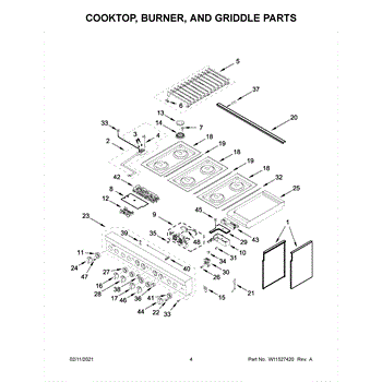 The Grate Pad is an OEM component for Whirlpool gas and electric ranges. Located underneath grates atop burner assemblies, this insulating pad protects the cooktop surface during use.