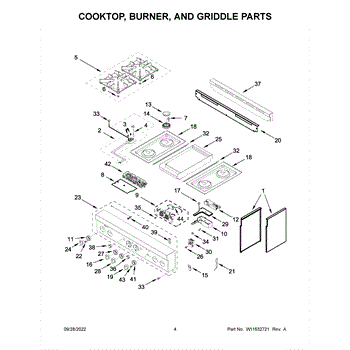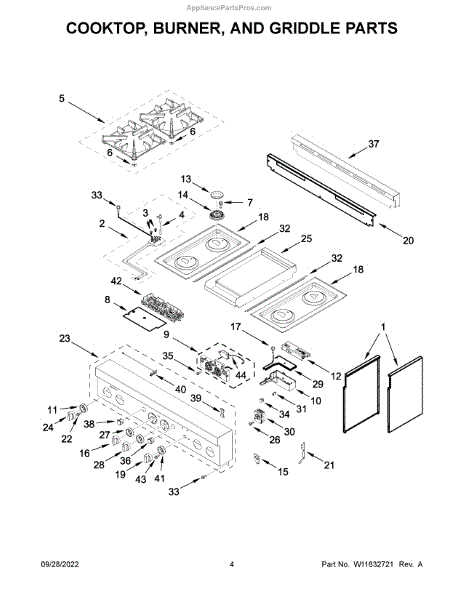 The Grate Pad is an OEM component for Whirlpool gas and electric ranges. Located underneath grates atop burner assemblies, this insulating pad protects the cooktop surface during use.