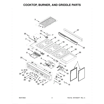 The Grate Pad is an OEM component for Whirlpool gas and electric ranges. Located underneath grates atop burner assemblies, this insulating pad protects the cooktop surface during use.