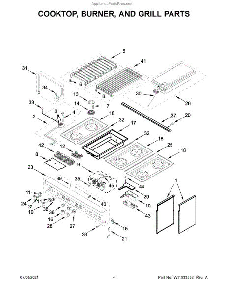 The Grate Pad is an OEM component for Whirlpool gas and electric ranges. Located underneath grates atop burner assemblies, this insulating pad protects the cooktop surface during use.