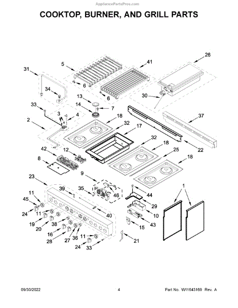 Causes related to normal wear over extended use, exposure to cleaning chemicals, or damage from heavy pans accidentally sliding off grates.