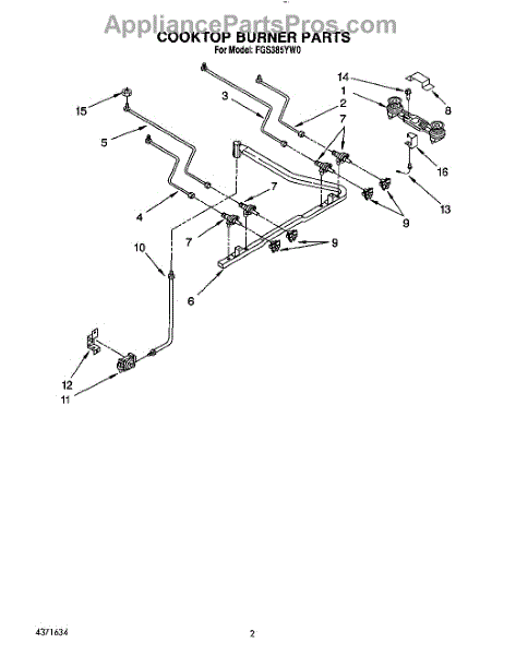 Parts for Whirlpool FGS385YL0: 02 - Cooktop Burner Parts