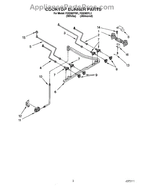 Parts for Whirlpool FGS385YL1: 02 - Cooktop Burner Parts