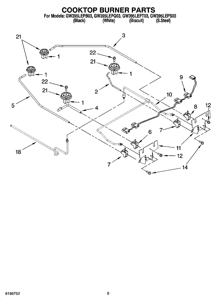 Parts for Whirlpool GW395LEPQ03: 07 - Cooktop Burner Parts, Optional Parts
