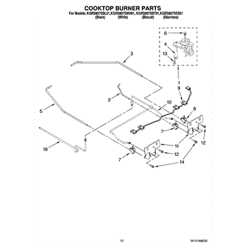 This orifice holder assembly secures the gas orifice to the burner tube, helping maintain correct gas flow for reliable ignition and consistent, even burner flame performance on compatible gas ranges and cooktops. What it does:
