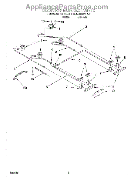 Parts for Kitchenaid KGRT500FWH1: 02 - Cooktop Burner Parts