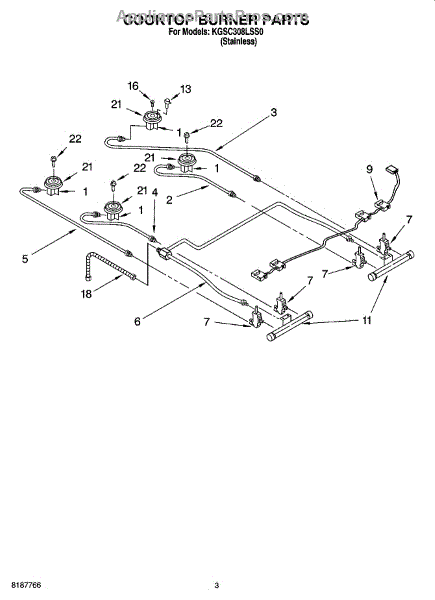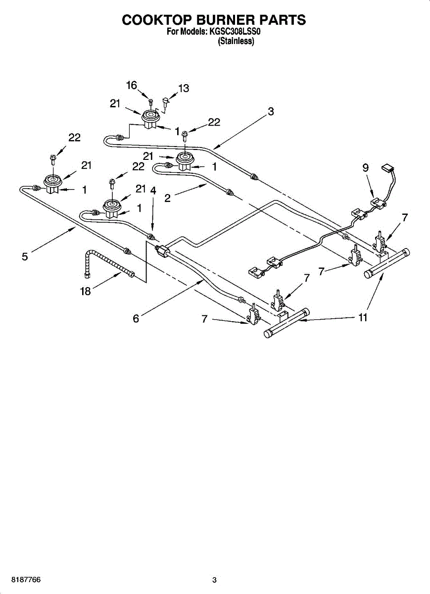 Parts for Kitchenaid KGSC308LSS0: 02 - Cooktop Burner Parts