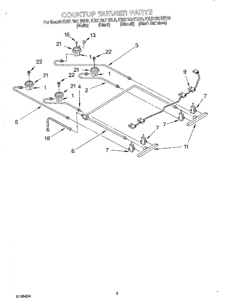 Gas cooktop burner orifice controls fuel flow to the burner. Located in the burner base under the burner head. Used in gas-to-propane conversions.