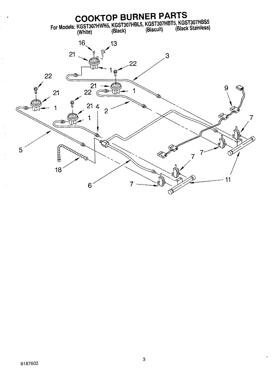 Parts for Kitchenaid KGST307HBS5: 02 - Cooktop Burner Parts