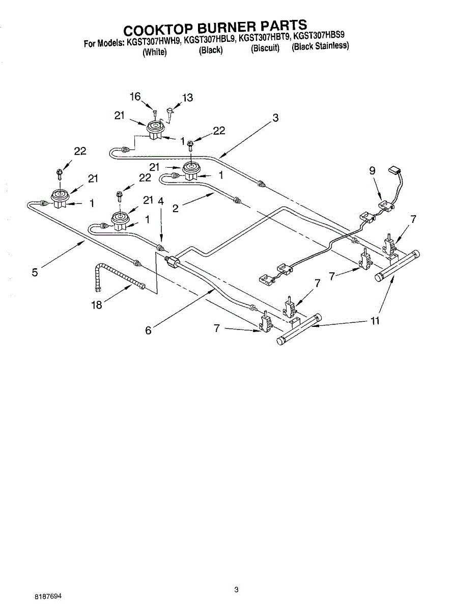 Parts for Kitchenaid KGST307HBT9: 02 - Cooktop Burner Parts