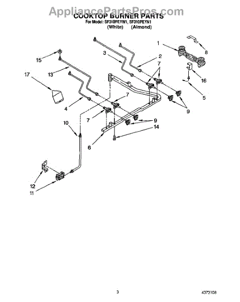 Parts for Whirlpool SF310PEYN1: 02 - Cooktop And Burner Parts
