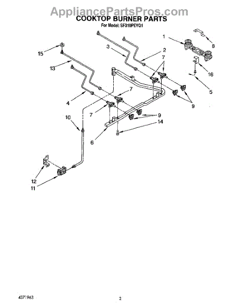 Parts for Whirlpool SF310PEYQ1: 02 - Cooktop Burner Parts