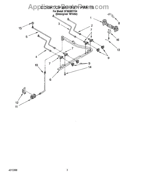 Parts for Whirlpool SF365BEYQ4: 03 - Cooktop Burner Parts