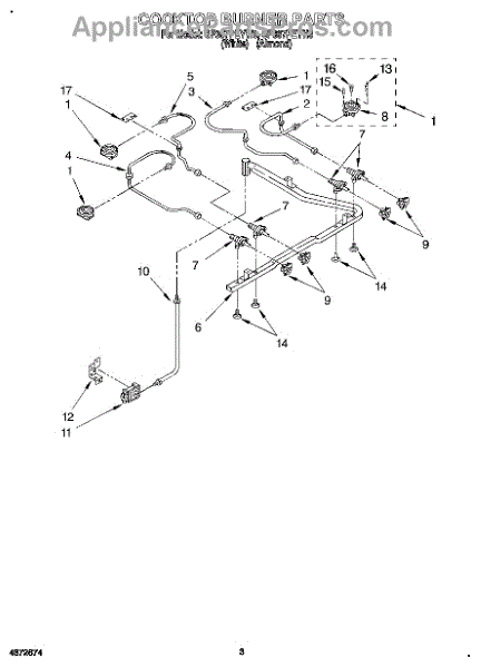 Parts for Whirlpool SF367PEYN6: 03 - Cooktop Burner Parts