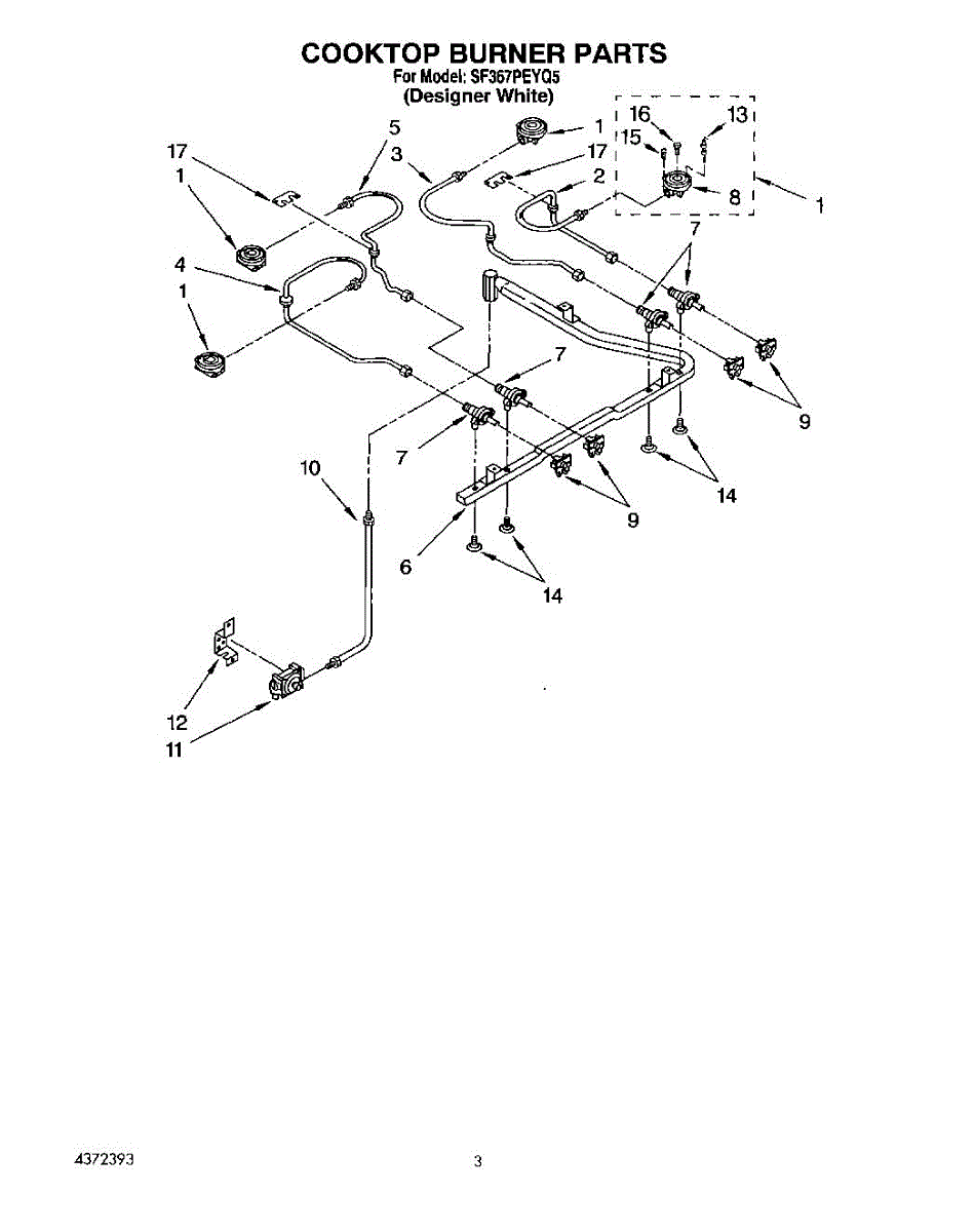 Parts for Whirlpool SF367PEYQ5: 03 - Cooktop Burner Parts