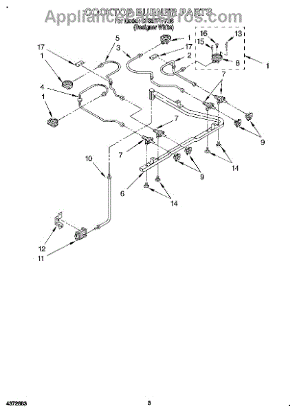 Parts for Whirlpool SF367PEYQ6: 03 - Cooktop Burner Parts