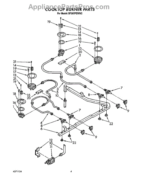 Parts for Whirlpool SF385PEWN2: 04 - Cooktop Burner Parts