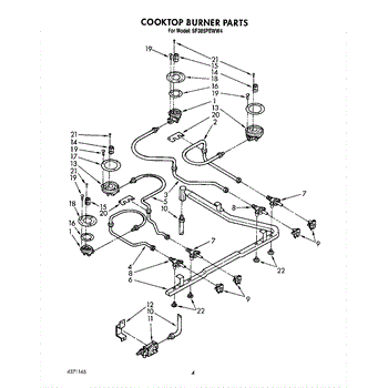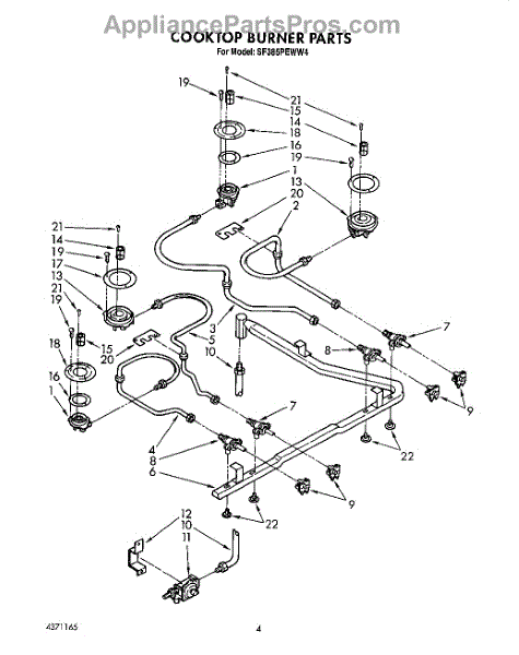Parts for Whirlpool SF385PEWN4: 04 - Cooktop Burner Parts