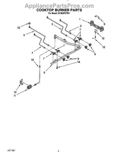 Parts for Whirlpool SF385PEYQ1: 04 - Cooktop Burner Parts