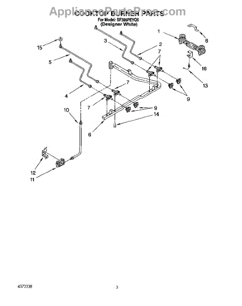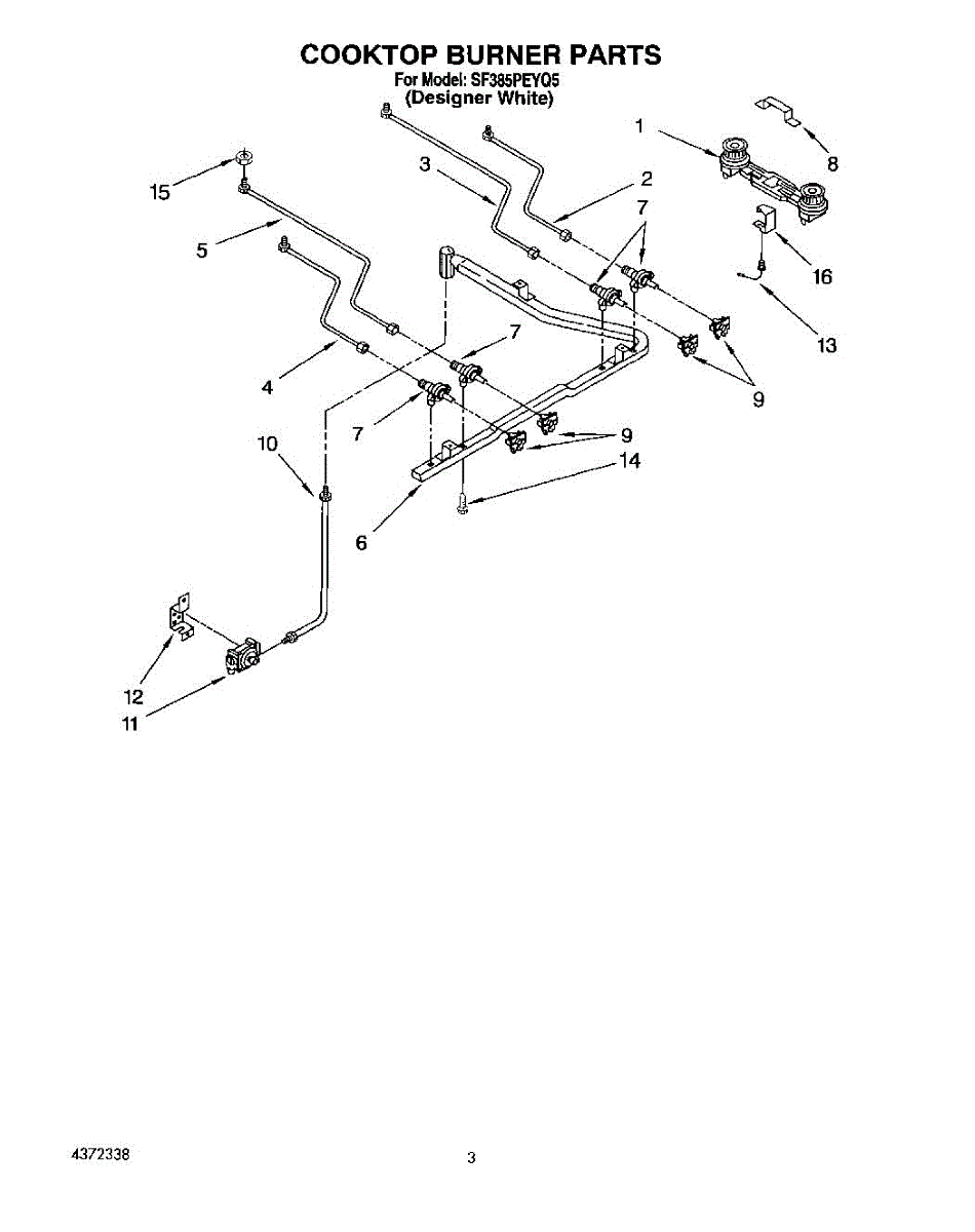 Parts for Whirlpool SF385PEYQ5: 03 - Cooktop Burner Parts